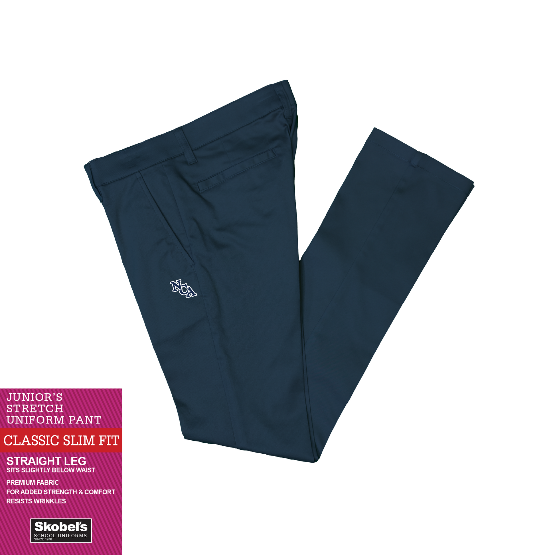 Junior Slim Straight Pants - Navy with New Covenant Academy logo