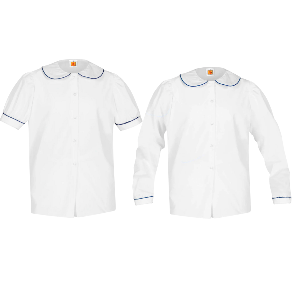 Round Collar Blouse with Navy Piping